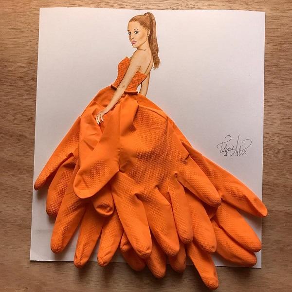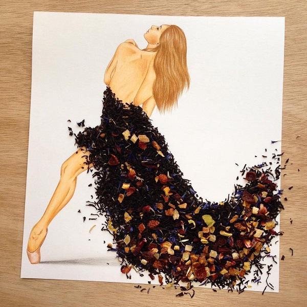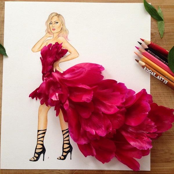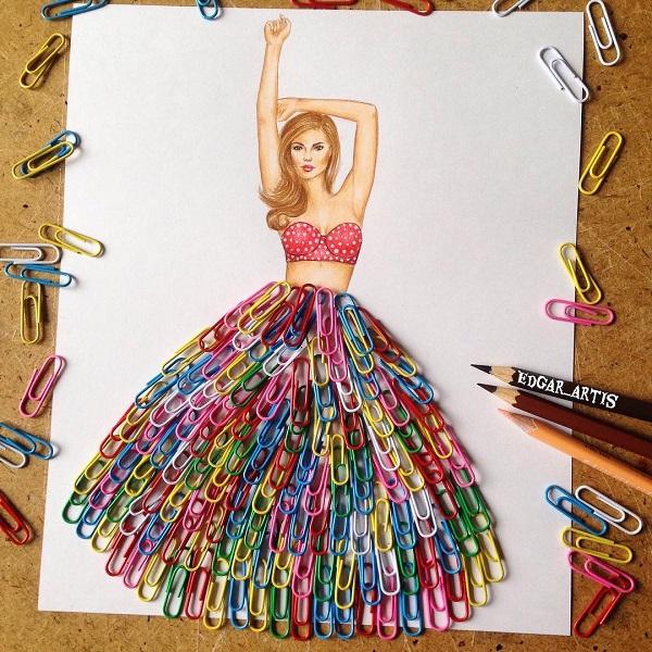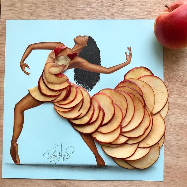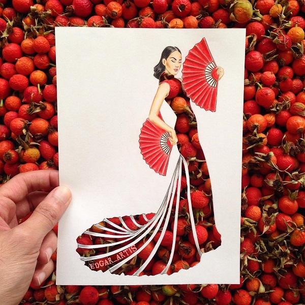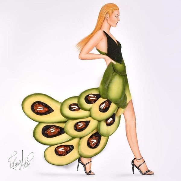 EdgaR_ArtiS is an Armenian artist who created unique style of fashion illustrations featuring dresses made of various foods. His work is mostly the collage of drawings by colorful pencils and photos of various daily foods, which reminds people how close these everyday stuff to the beautiful artworks.