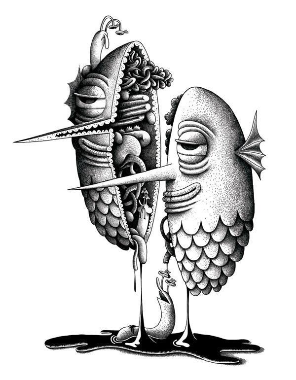 Illustrations by French artist Nicolas Barrome. Barrome was born in Saint Jean de Luz in 1980 and grew up in the Basque country. Nicolas’s work is very character driven. He likes to draw all kinds of furry animals, dogs who squint, the giant squid …