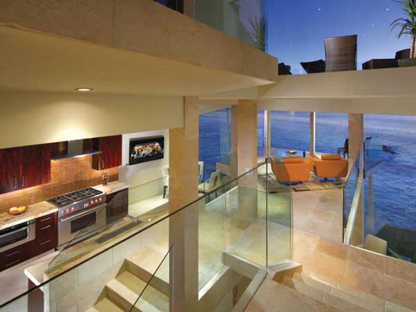 This single family villa spreads over 2,470 square feet, featuring a tasteful remodel that transformed the residential building into a dream oceanfront house. The Laguna Beach Residence is located on a promontory, overlooking the huge stretches of water from behind transparent glass walls.