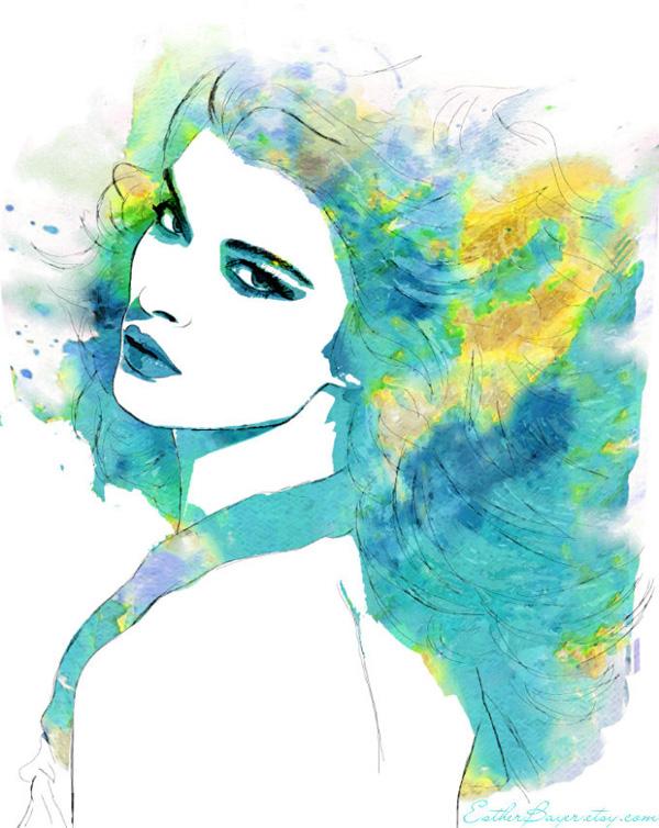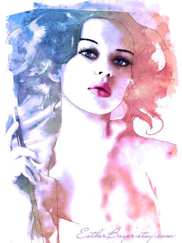Esther Bayer is an illustrator and designer from Charlottetown, PE, Canada who is fascinated with creating illustrations of faces and expression. She loves the fluidity of watercolor and experiment various of methods by combining traditionaland digital elements, creating beauty in her pieces.