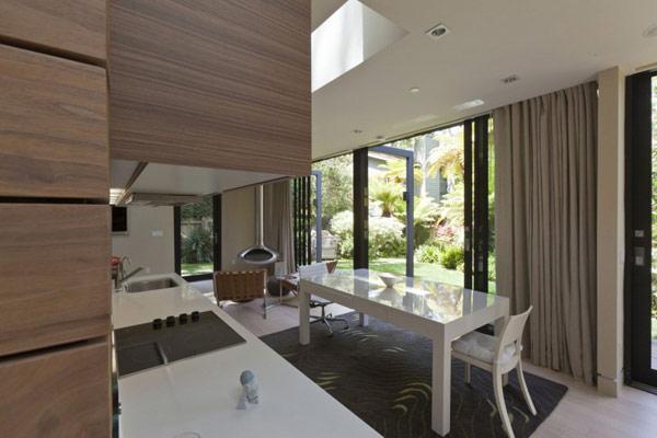 Designed by Jendretzki Architects, the modern residence offers a practical an healthy living environment. This new pavilion added to an existing mid century house in the Rustic Canyon area of Santa Monica bordering the Pacific Palisades involved negotiating the high functioning requirements of a Los Angeles based family and their love for Scandinavian design and detailing