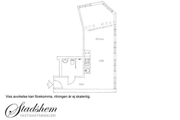 According to Stadshem, a complete renovation of the small crib recently took place, with the addition of a new kitchen with state-of-the-art integrated appliances. The apartment has a practical layout, with an open plan living room and kitchen area and a flood of daylight from the six windows. The ceiling height is 2.8 meters and has unobstructed views of the river and green space adjacent to the sports facilities across the water. All walls are painted in light gray against the white-oiled pine floor.