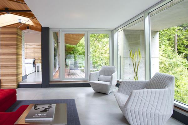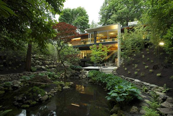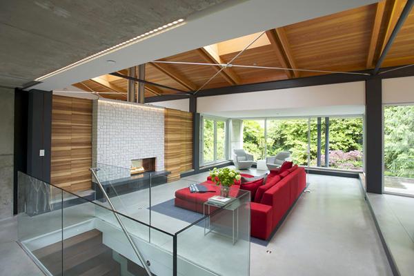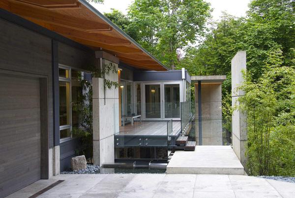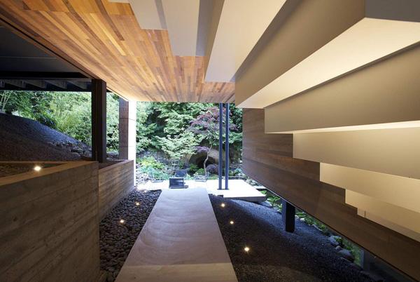 Designed by Architects, DIALOG, the Southlands Residence nestles into a mature, heavily vegetated corner site in Vancouver, British Columbia, Canada. A year-round fresh water stream divides the irregularly shaped property as it threads its way below Marine Drive to the south. The lush basin resulting from long-standing environmental forces sets the stage for a dramatic and highly contextual architectural response.