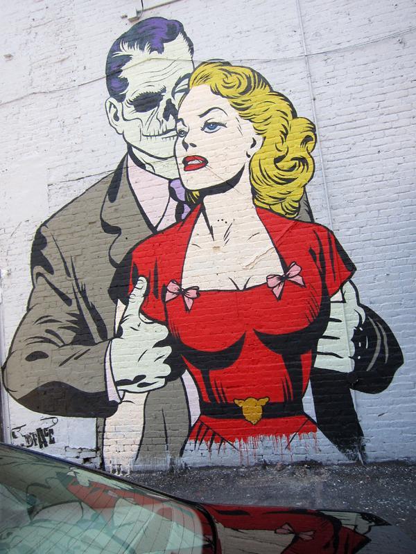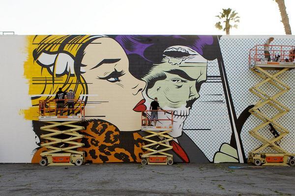 D*Face, aka Dean Stockton, is a British multimedia street artist who created the amazing street at by using spray paint, stickers, posters, and stencils.