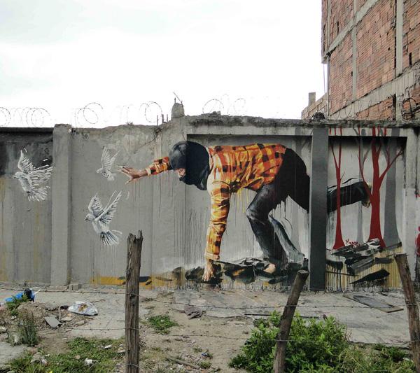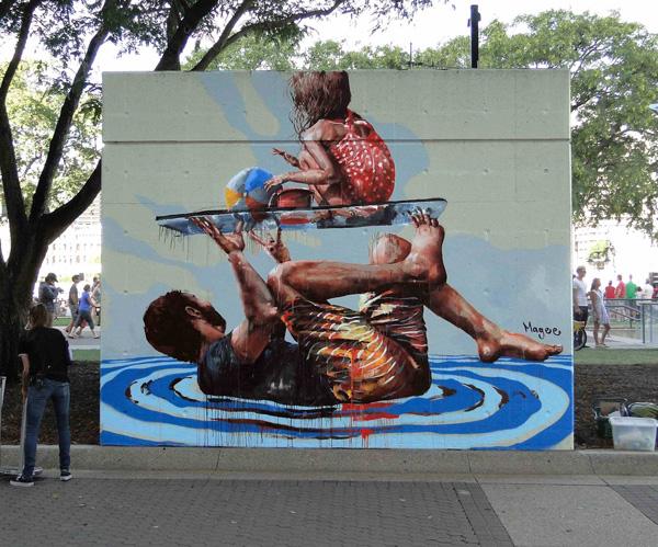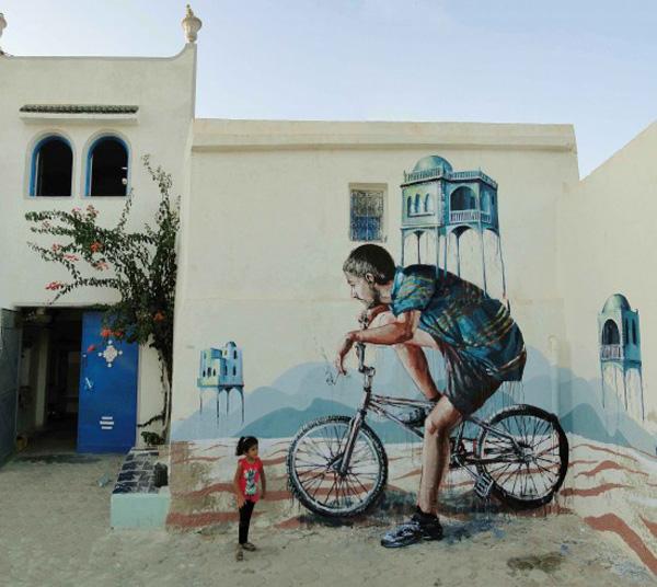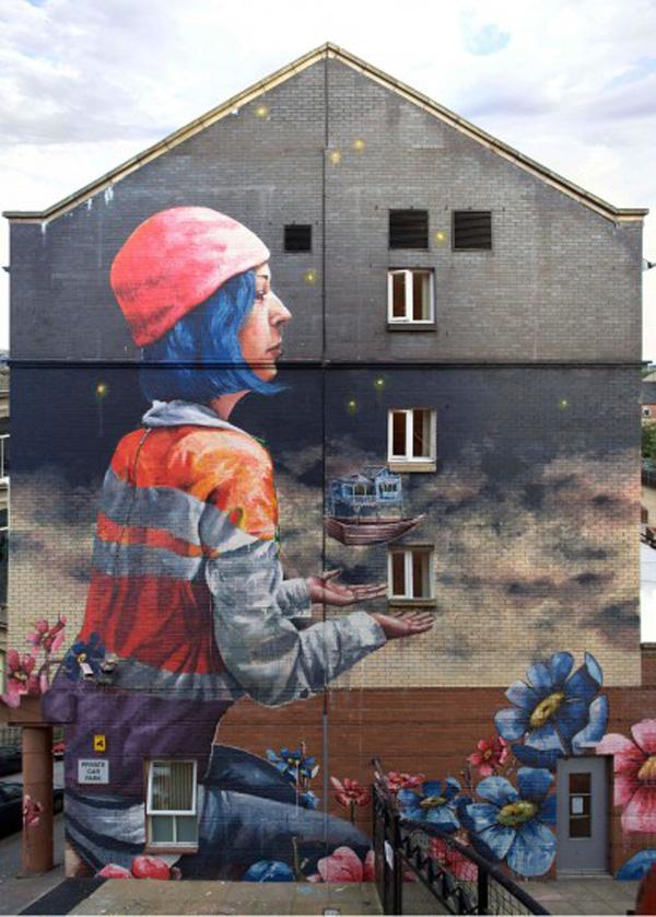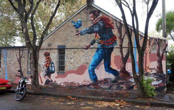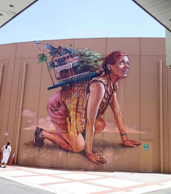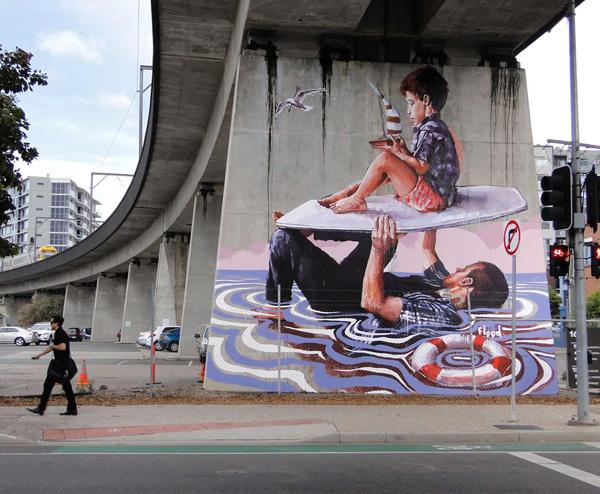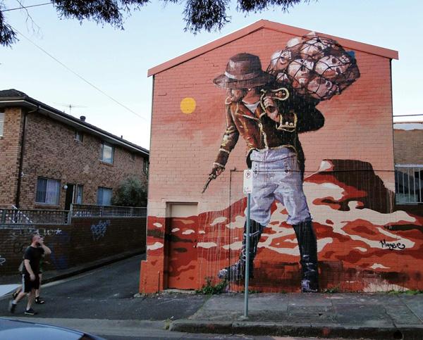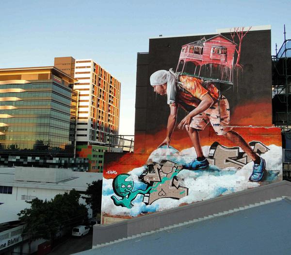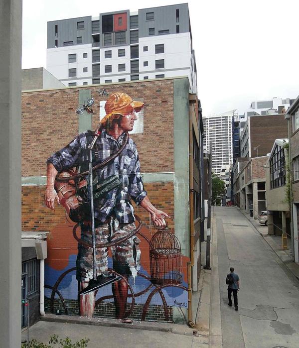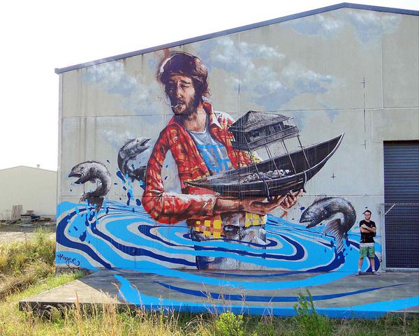 Fintan Magee is a recognised Australian street artist known for his murals throughout Queensland and later in New South Wales. Fintan’s works are featured by large figurative paintings with a touch of surrealistic style. Fintan has contributed a lot of iconic murals in Australia – “First Coat”, “The Tate Gallery”, etc.