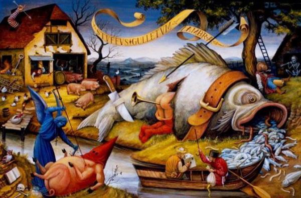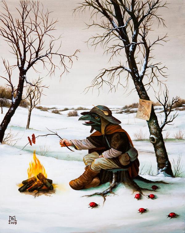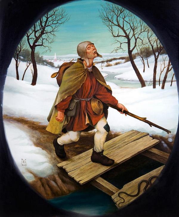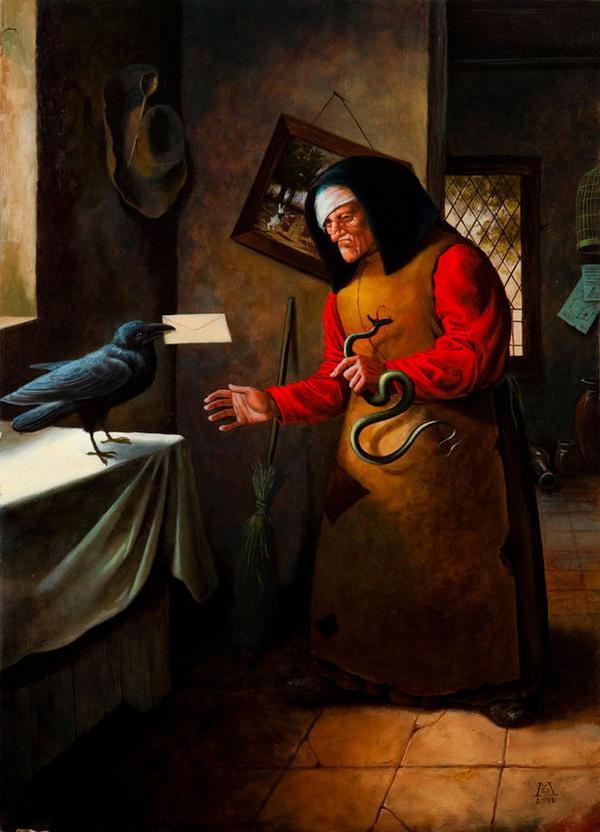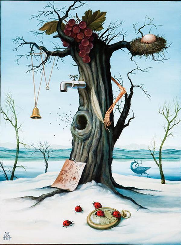 San Francisco, CA. based artist Mike Davis painted surreal, religious and symbolic narrative paintings with classic elegance of the medieval world.