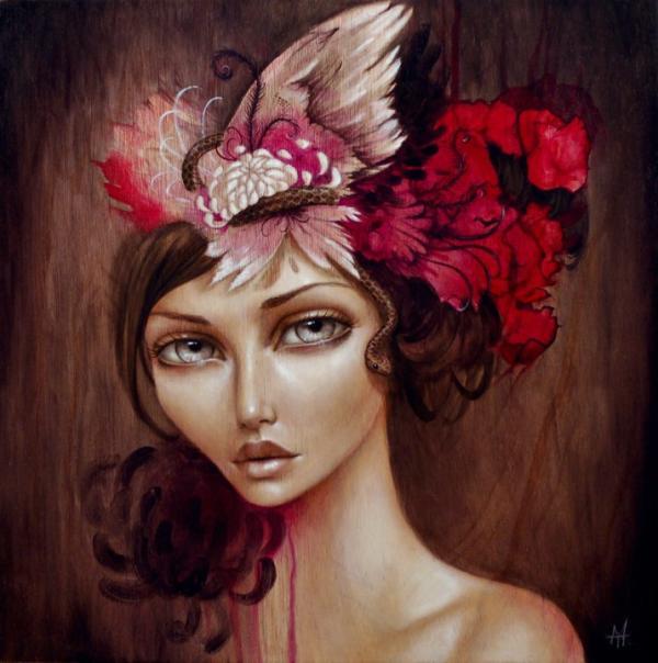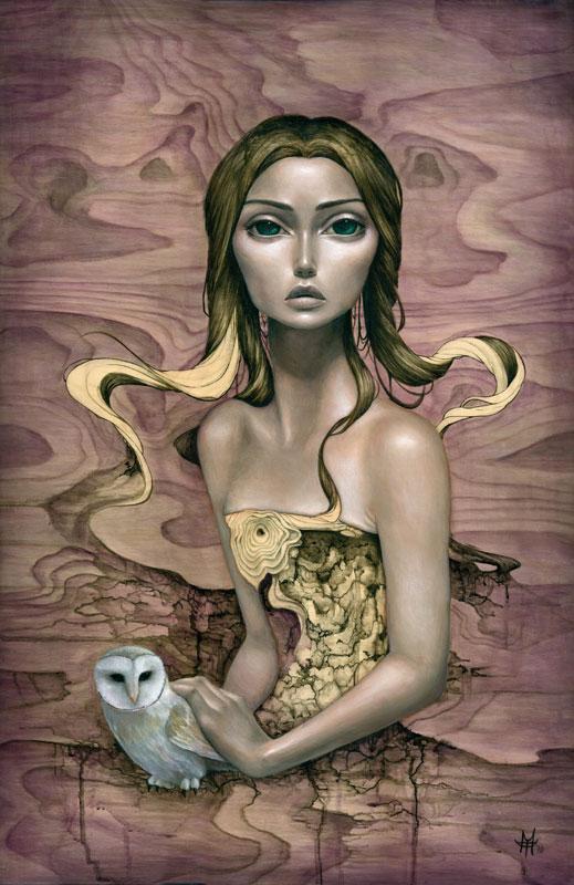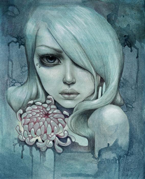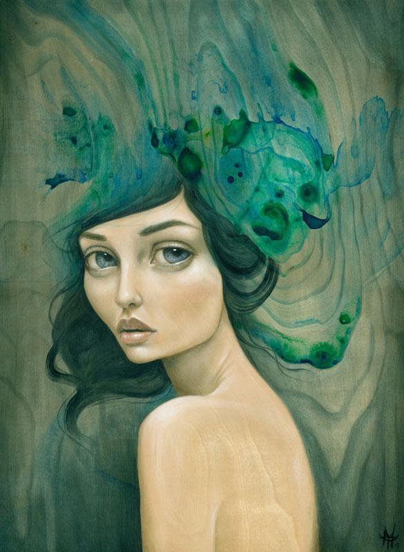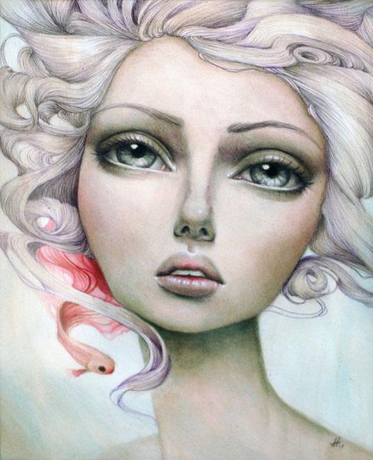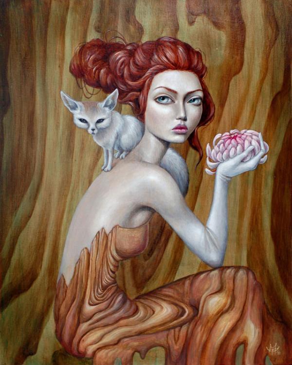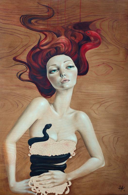 Mandy Tsung was born in Banff, Alberta in 1984. She attended the Alberta College of Art and Design and graduated with a Bachelor of Fine Arts in 2006. Her paintings center around ravishing, pop-culture inspired female subjects, and are generally composed on wooden panels.