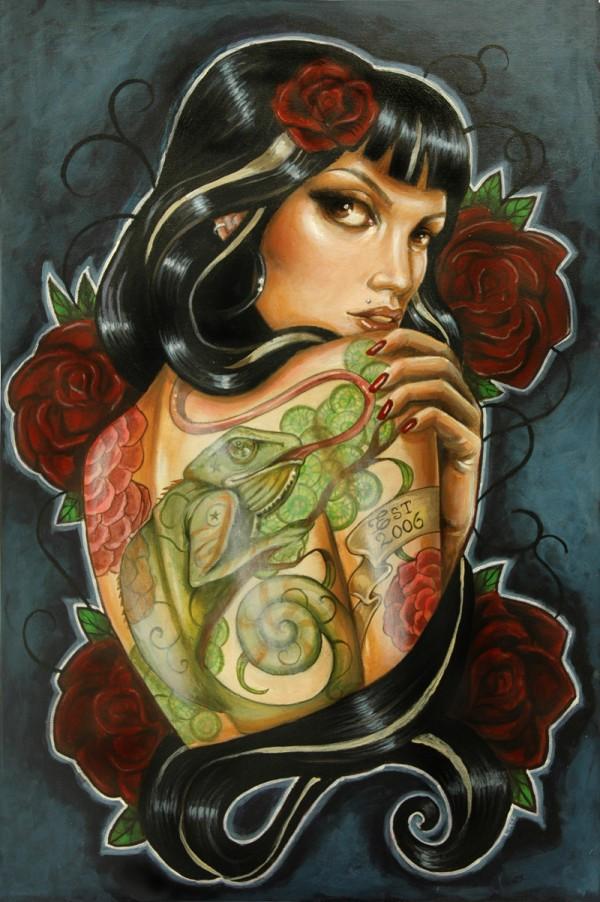 Amazing tattoo paintings by Lisa McIntyre. Lisa is a talented artist in Chameleon Tattoo Studio in Paisley, Scotland. Lisa uses uses oils and acrylics in her painting.