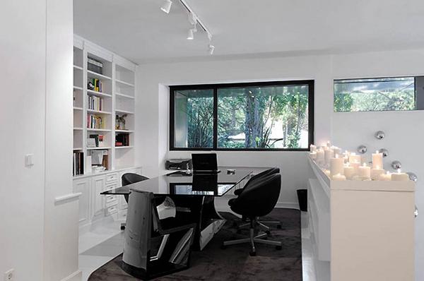 A-cero designed almost every single detail: from the unusual structure, to the interior beams and panels adorning the living area and the furniture that blends chromatically with the whole house concept. Everything respects a very modern line, even the bedrooms which are designed to be a little bit warmer than the rest of the house.