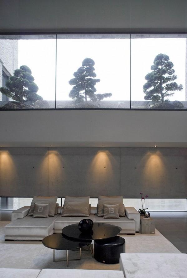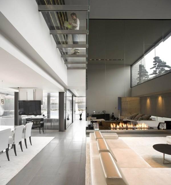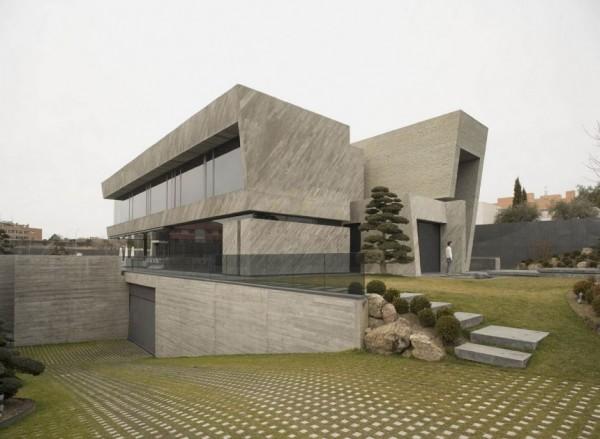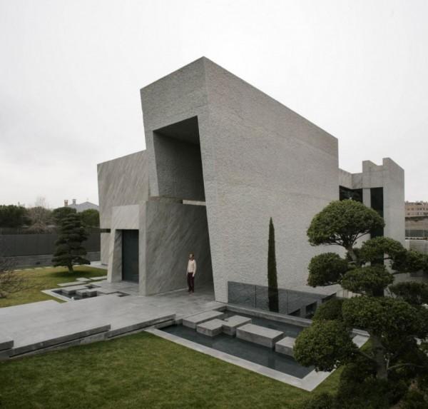 This is inspired in the “Oteiza” work, a very important Spanish sculptor. With a powerful look, Open box is notable for its façade in concrete granulated in some face and brandering in other faces. The house´s plot has is 2.600 m2. It has three storeys. The basement takes the garage and facilities and the ground floor has the living room, kitchen and servant’s quarter. In the first floor are the private rooms (4 bedrooms) and a library. The interior design includes furniture designed by A-cero and the Italian company Fendi. The landscaping has been designed by A-cero too. It is a Japanese garden As a conclusion, an A-cero work in which you can see its looking for the quality, comfort and design excellence.