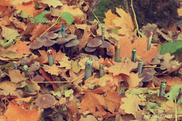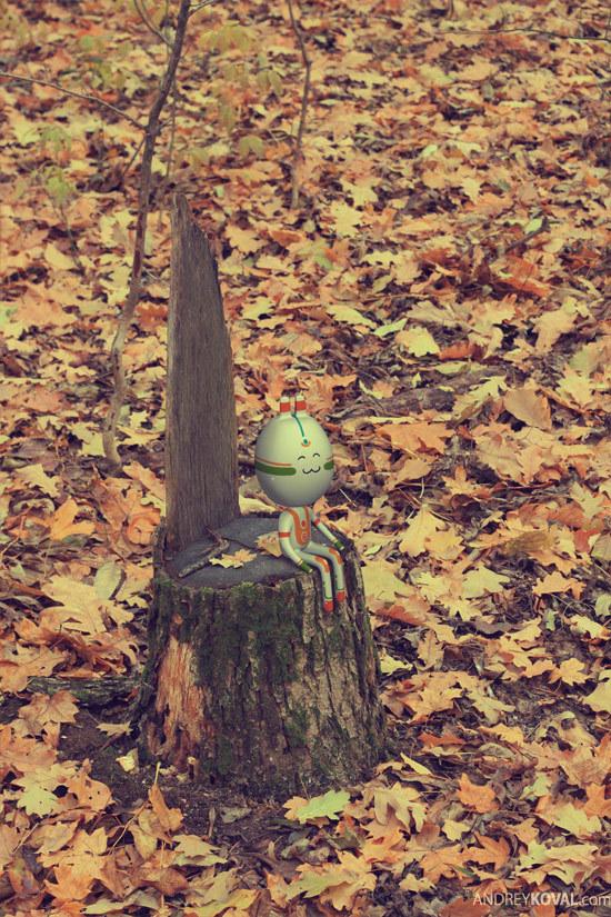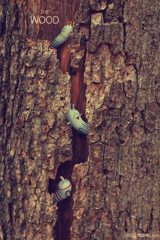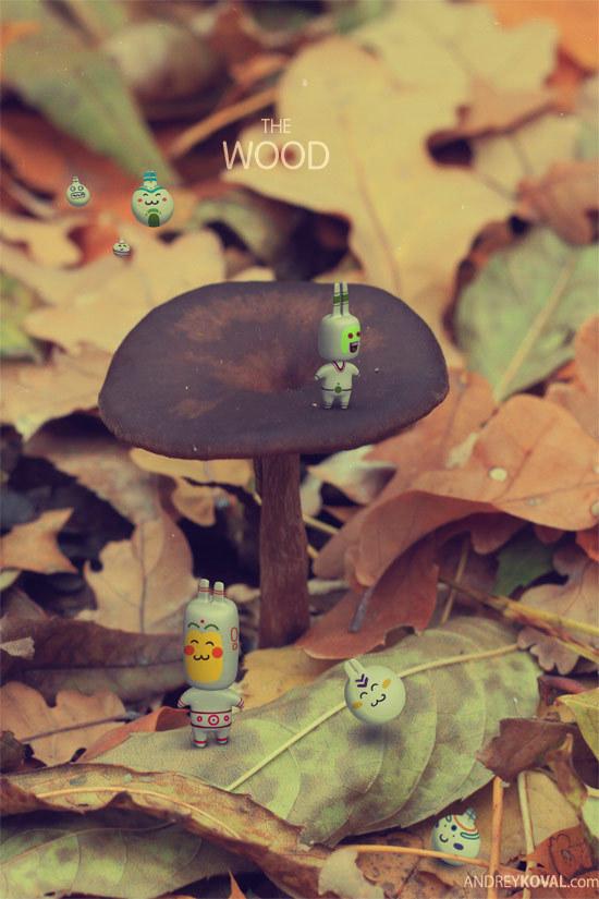 THE WOOD is a project completed by Kharkiv, Ukraine based artist, illustrator Andrey Koval. With perfect deco of cartoon toys among the leafage and stumps and mushrooms, Andrey created a mysterious cartoon world.