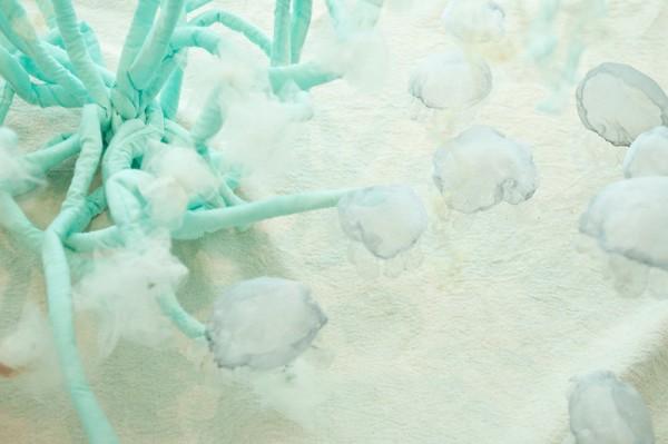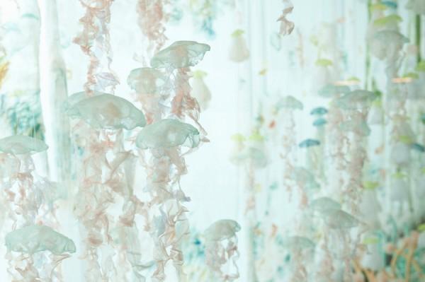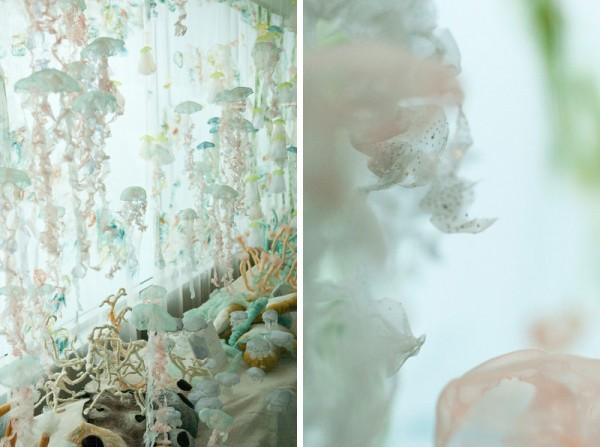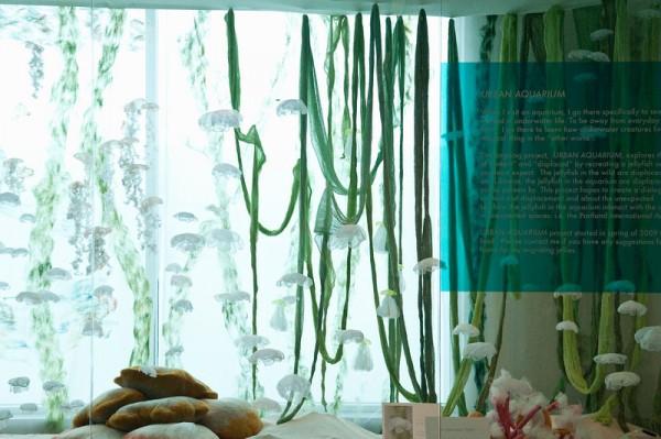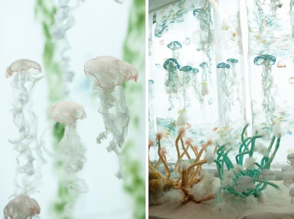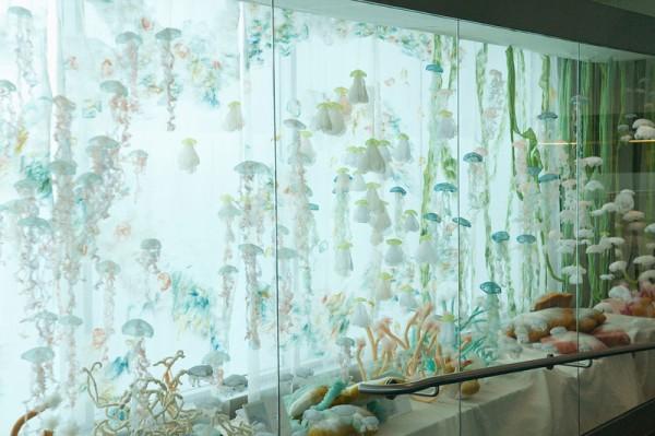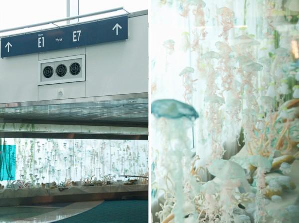 Inspired by the ever-changing underwater life, Portland-based multidisciplinary artist Sayuri Sasaki Hemann creates a lovely fabric jellyfish aquarium, titled ‘Underwater Flight’ in the Portland International Airport.