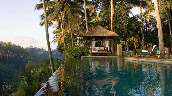 Some of the features of the resort include a bar with a famous collection of scotches and cognacs, a restaurant serving a contemporary French menu influenced by exotic Asian flavors, a Spa offering sublime views of the Petanu River valley, a conference room, a gymnasium and a helicopter pad. Even though the uniqueness and charm of this resort derives from its secluded nature, for visitors wanting to experience local culture, the village of Ubud lies just minutes away.