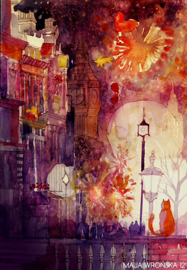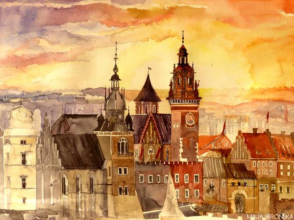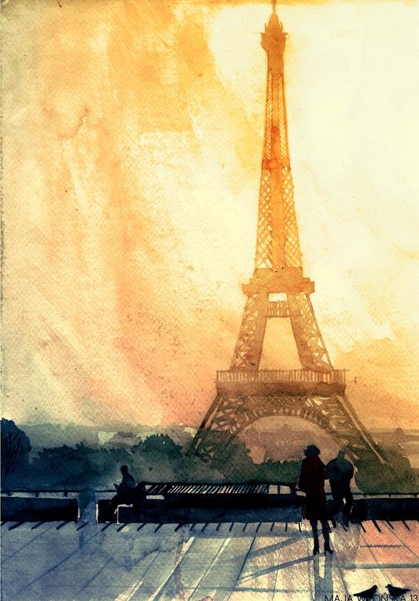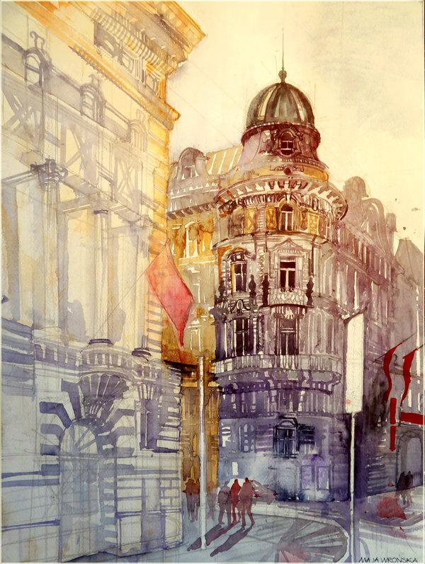 Maja Wronska, aka takmaj is an artist from Poland who painted a series of world architectures in watercolor in a unique style. Each of her work is sketched with the pencil and painted in great details.
