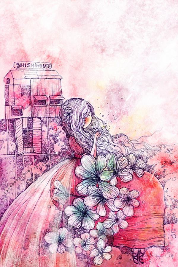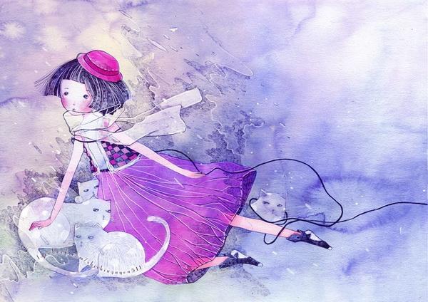 Nguyenshishi is an artist from Vietnam who created the cute watercolor paintings.