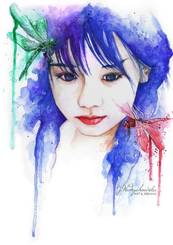 Polish artist Joanna Wedrychowska created a gallery of beautiful watercolor portrait paintings. Love her vibrant colors.