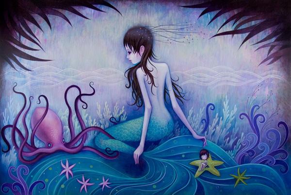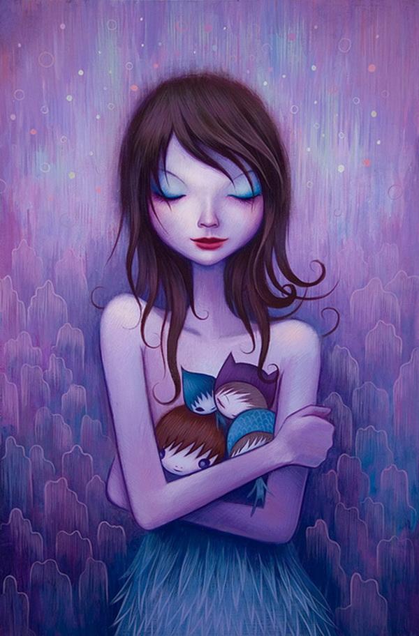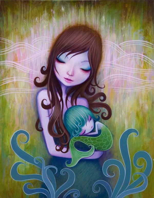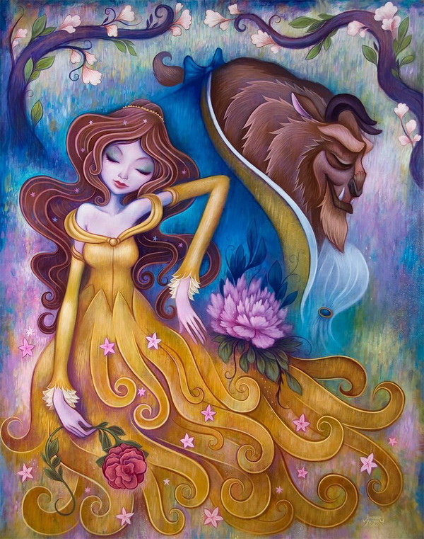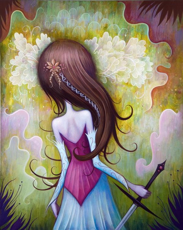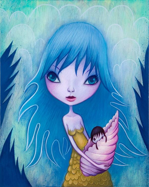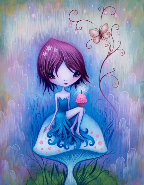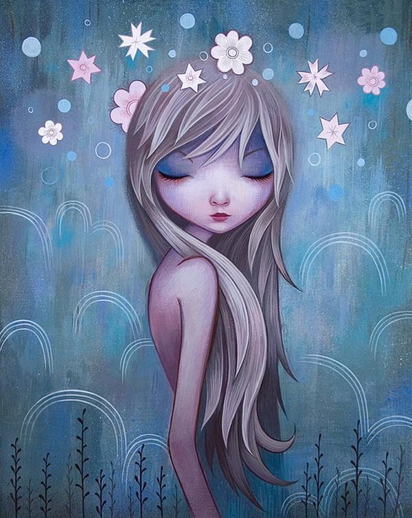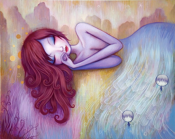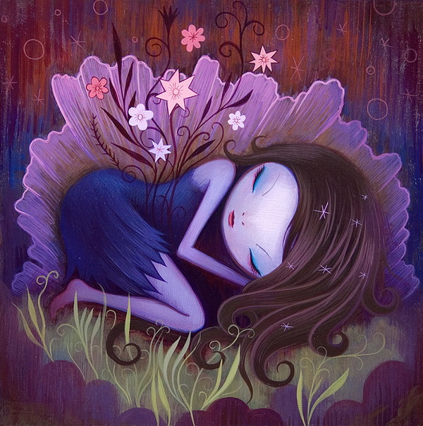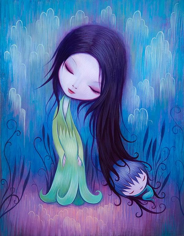 Chicago, Illinois based artist paints cute and whimsical fairytales with candy-floss landscapes and vivid colors. Jeremiah’s paintings are influenced by Japanese culture, the fabrics and mango as well as Art Nouveau, taking inspiration from the unruly aspects of the natural world.